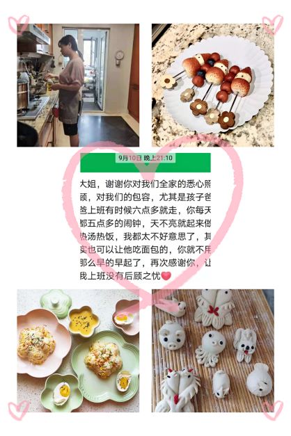 阿姨為人隨和,注重個人衛(wèi)生,日常工作主要是